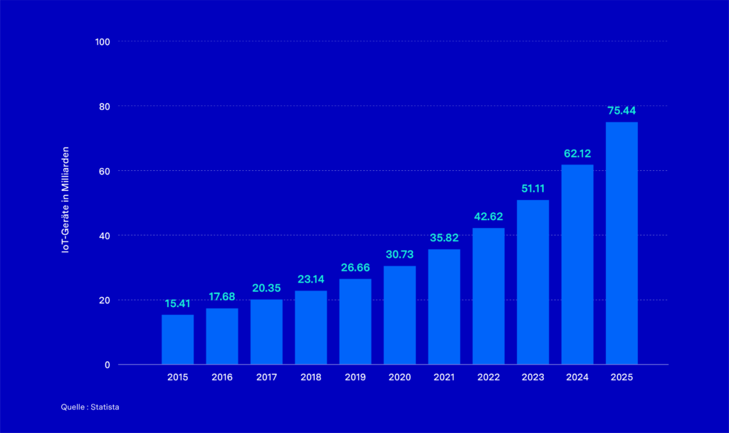 It is expected that more than 75 billion IoT devices will be in use across the globe by 2025. What’s more, blockchain could become a key technology for data management (Source: Statista)